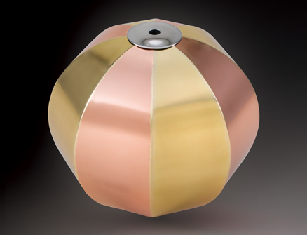 左 中 右 厚生労働大臣賞という栄誉ある賞をいただき、驚きとともに大変うれしく思っています。 今回出品するにあたり、最大のテーマとなったのは“展示会で一般の方にも興味を持っていただけること”でした。これは他業種からも我々の知らないニーズを引き出すきっかけになれば、との思いからです。そこで誰が見てもわかる形をデザインしました。もちろん目立つだけでは技術の宣伝になりませんので、どちらの要素も合わせ持つ“異種金属溶接”にたどり着きました。 一般的な材料かつ目立つ色ということで真鍮と銅を採用したのですが、どちらも軟らかく熱伝導率が高いため、溶接でのひずみが大きいことが問題でした。特に平面の突き合わせに近い上下面ではかなりの時間をかけ慎重に溶接し、また何段階にも分けて少しずつ仕上げを行うことで、熱の影響を最小限に抑えながらの作業となりました。 この作品の製作にあたり、他の金属でもいろいろ試した結果、相性の良し悪しがかなり把握できました。またその理由もおおよそ理解できたことが今回の大きな成果だと感じています。 今回の受賞を機に、より自信をもって新規開拓に臨み、会社の発展と一層の技術向上に努めてまいります。 |