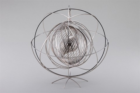 中球を吊るして回転させることにより波紋が広がるように見えます。