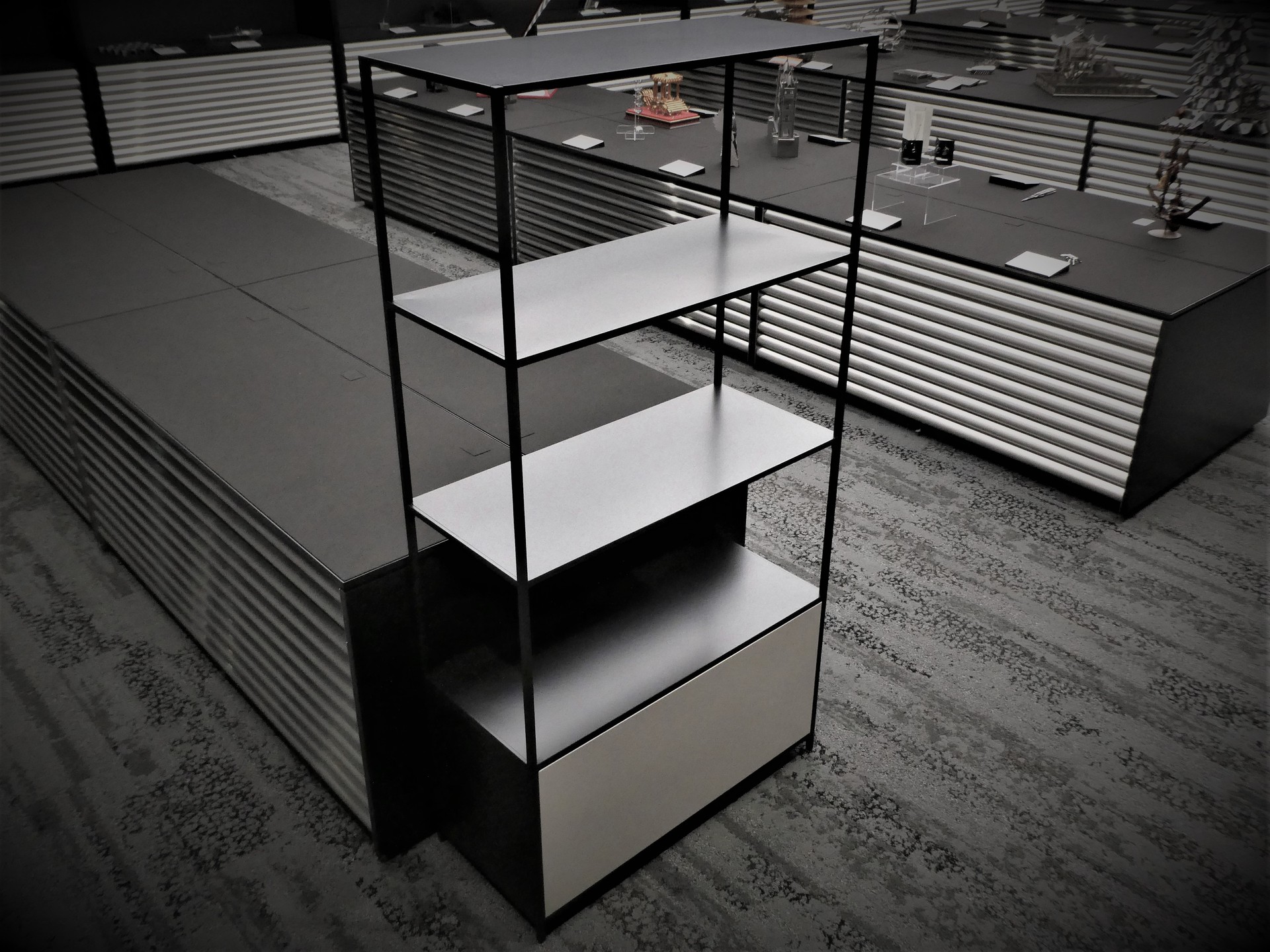 デザイナーと自社でできる加工から開発コンセプトを打合せて“魅せる収納棚”「ラインユニットシェルフ」を製作しました