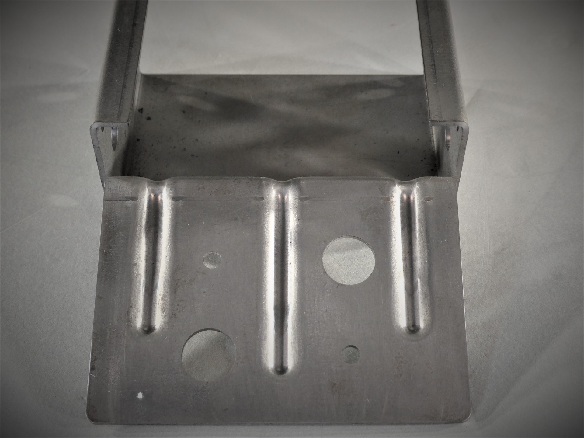 また市販品では強度が持たなかった為、社内で自作に至った経緯もあり、移動させる事も考慮し、軽量化かつ強度がある金物が必要であった為、t1.6で曲げ部に補強をいれて強度UPをしました。