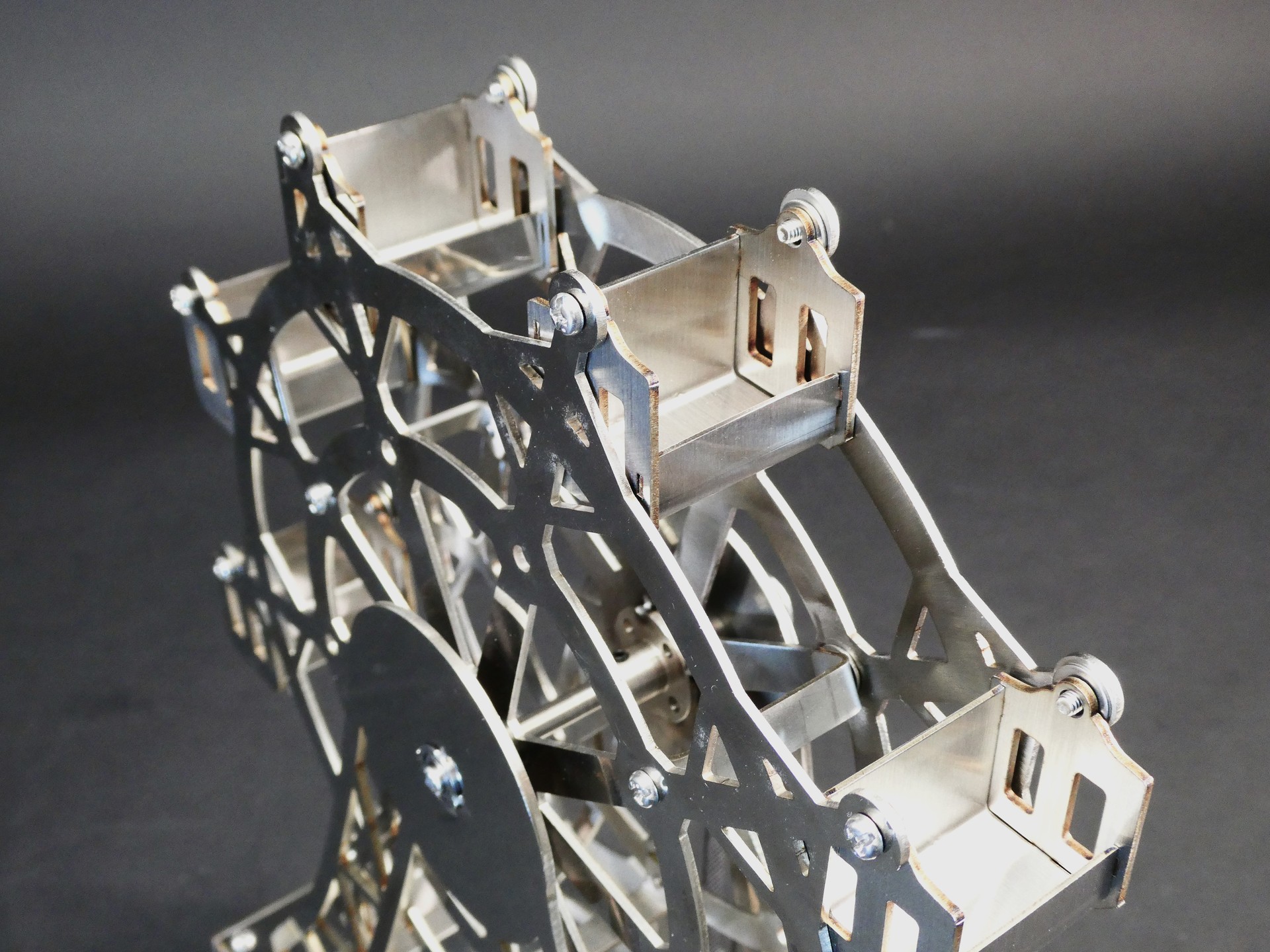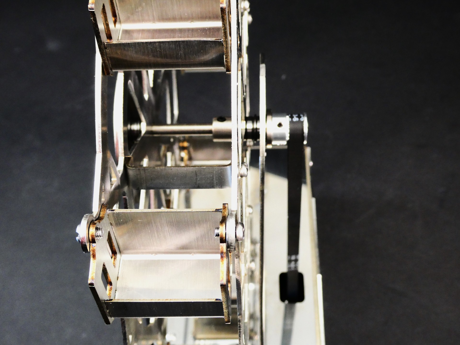 可動部で部品同士の接触等があり、個々の部品の高い加工精度が必要で、自社の加工技術や加工機を高い精度で使いこなす事で、観覧車を作成することができました。