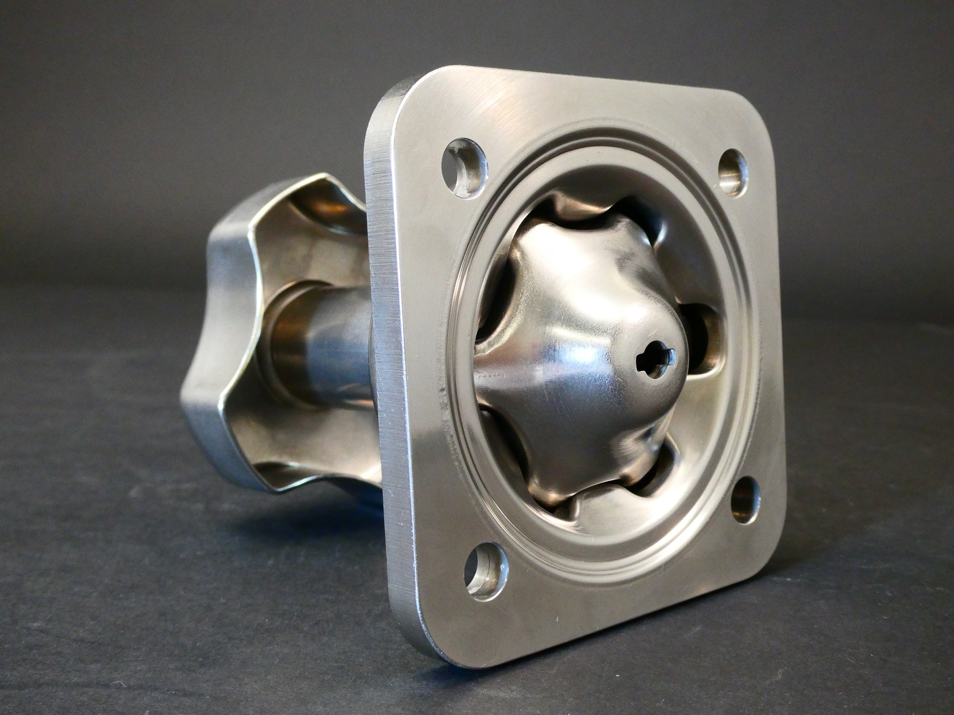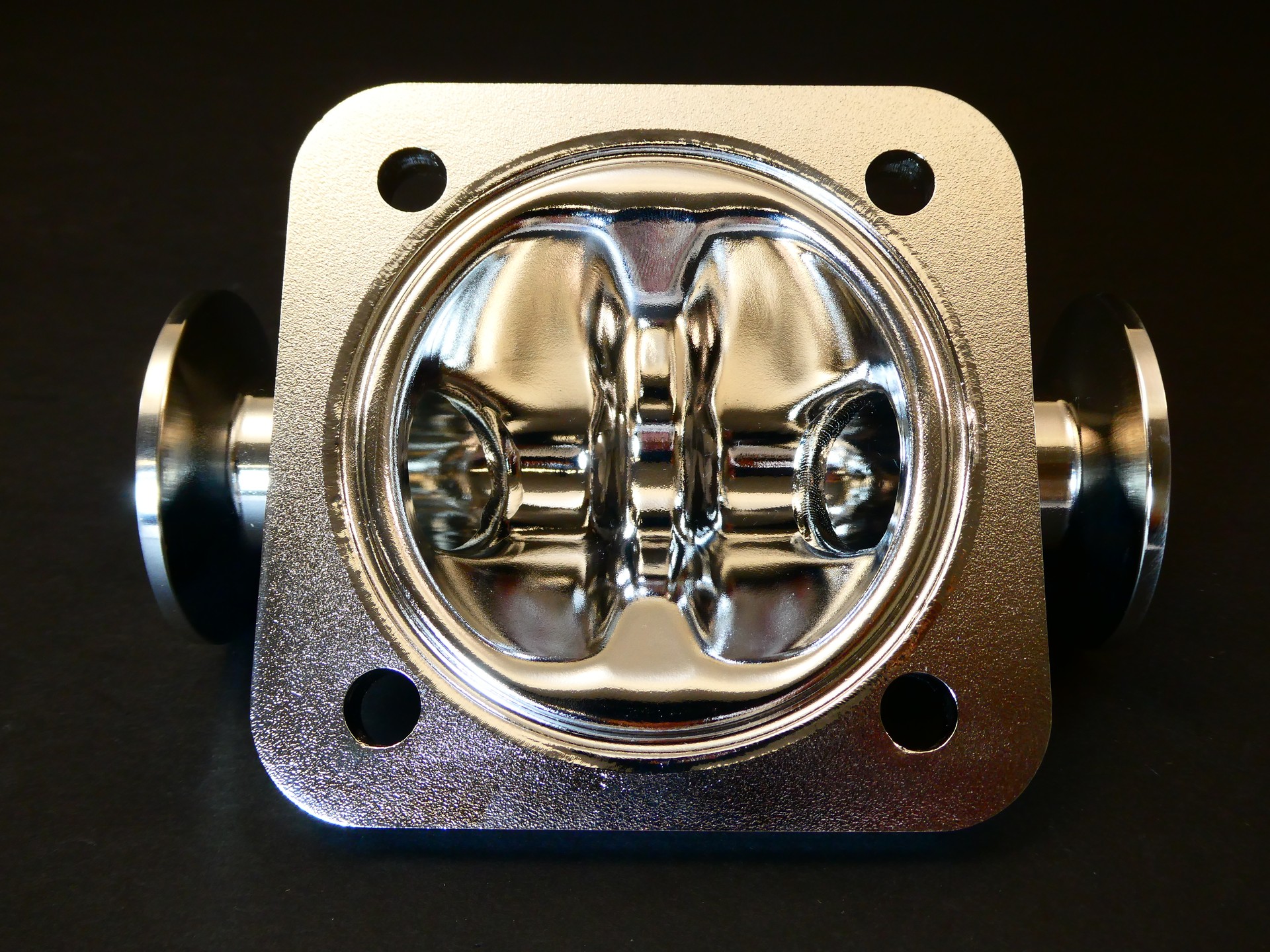 従来、鋳物もしくは切削品であったバルブ製品を板材からのプレス深絞り工法に切り替えることにより、「軽量化・コストダウン・高性能化」を実現した製品です。