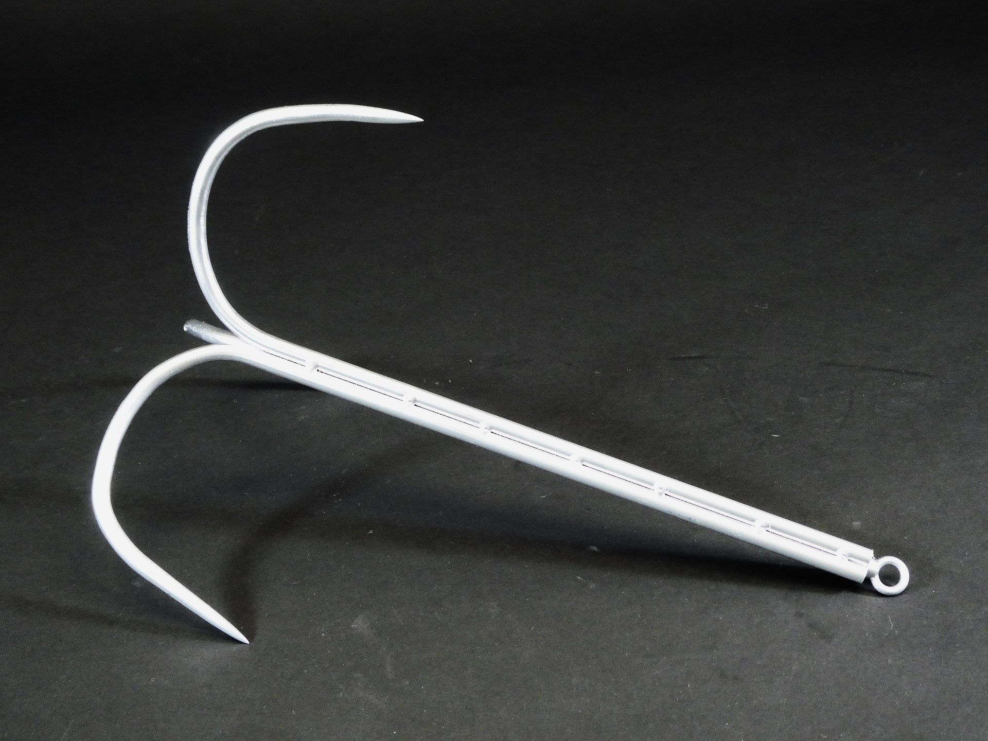 先端部をサンダーで加工する際に実際のバーブレスフックのように鋭利になるよう気を付けました。