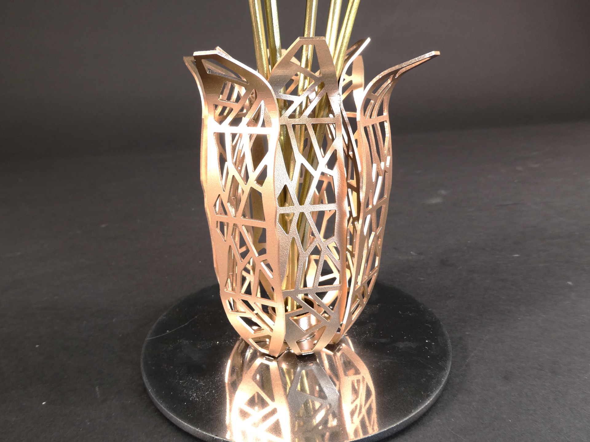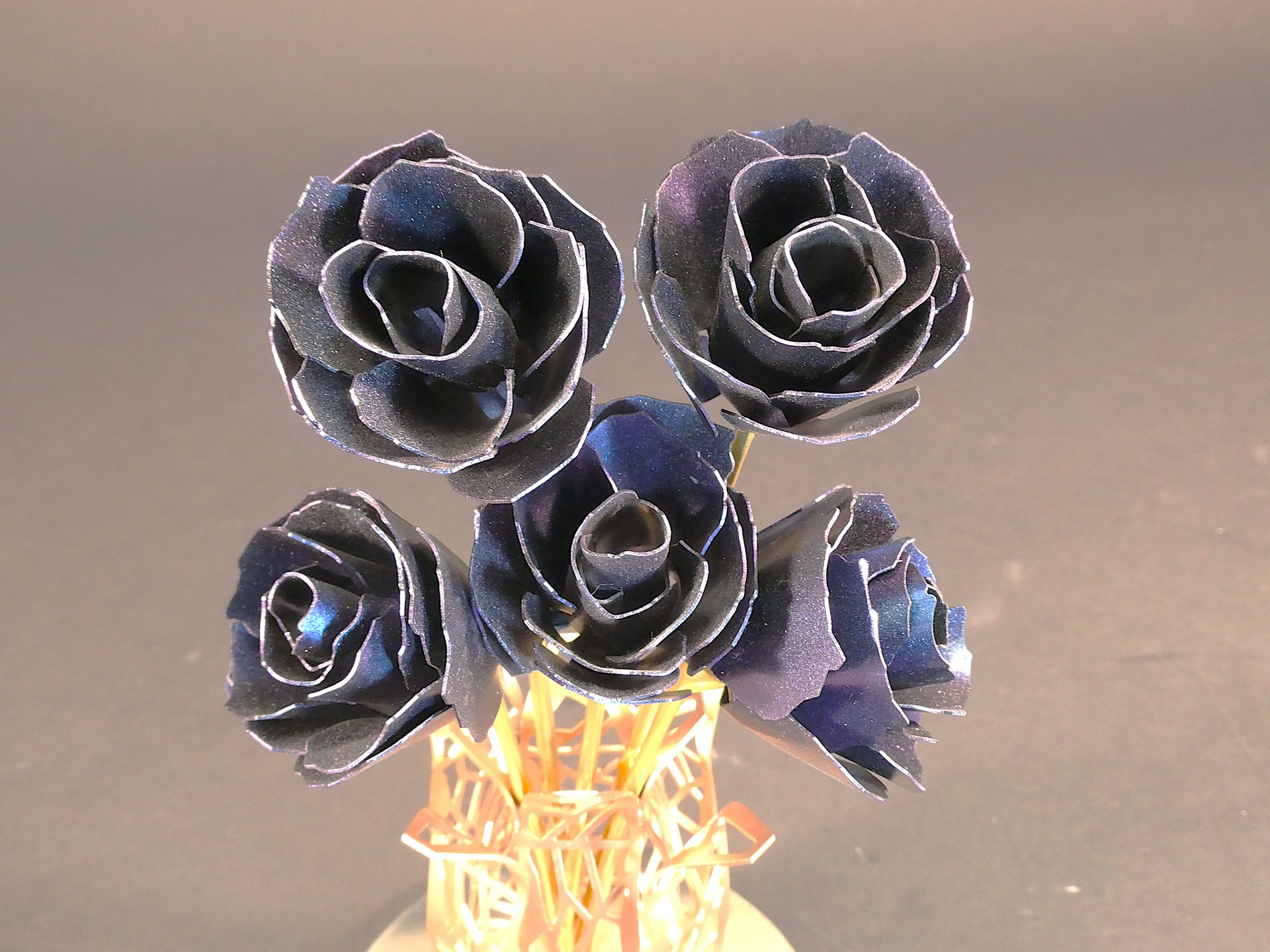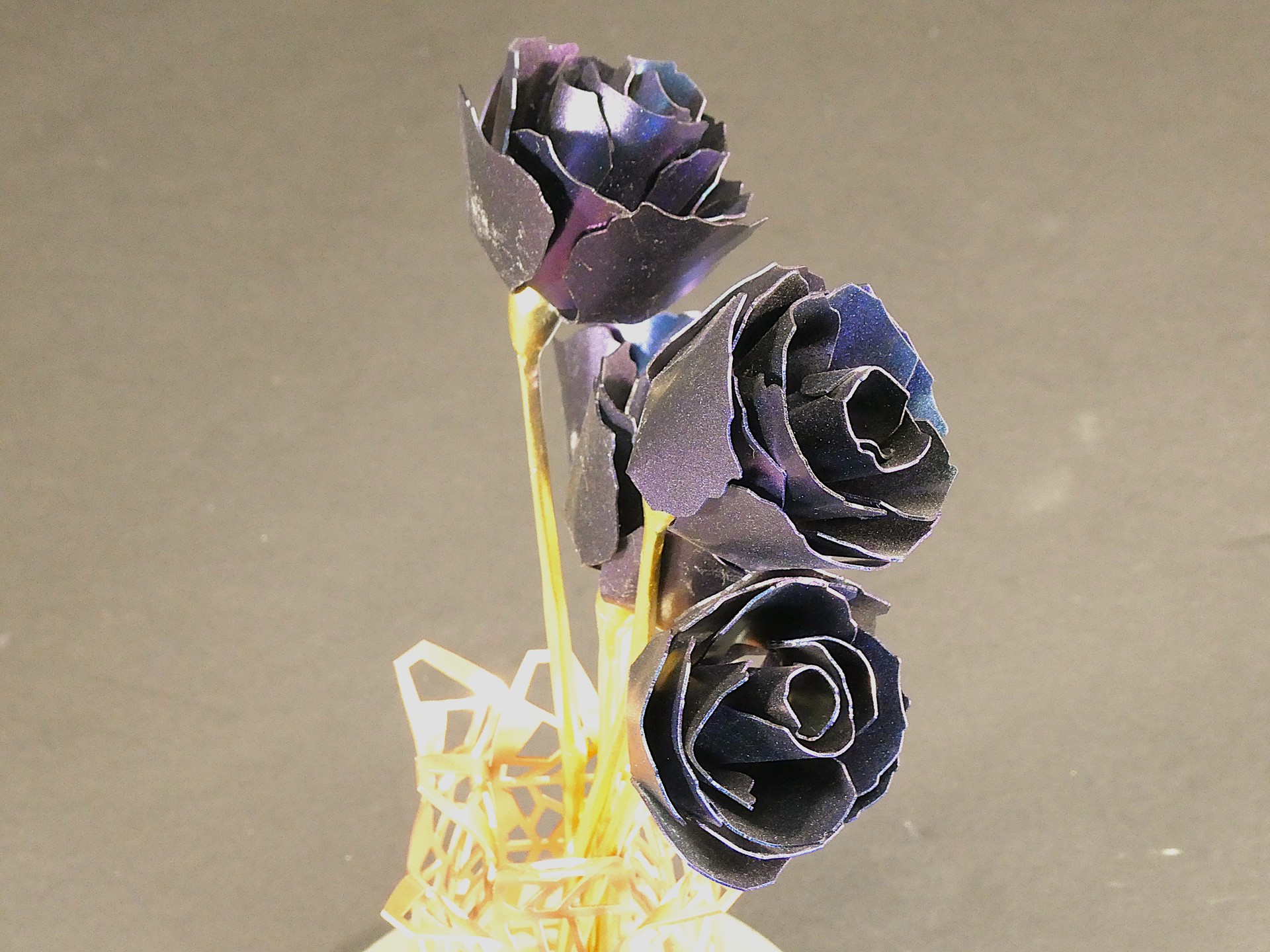鉄でバラをどう表現するか悩み考え何回か試作して作りました。