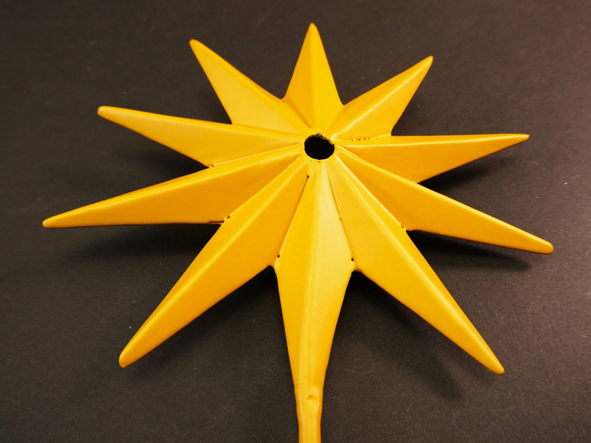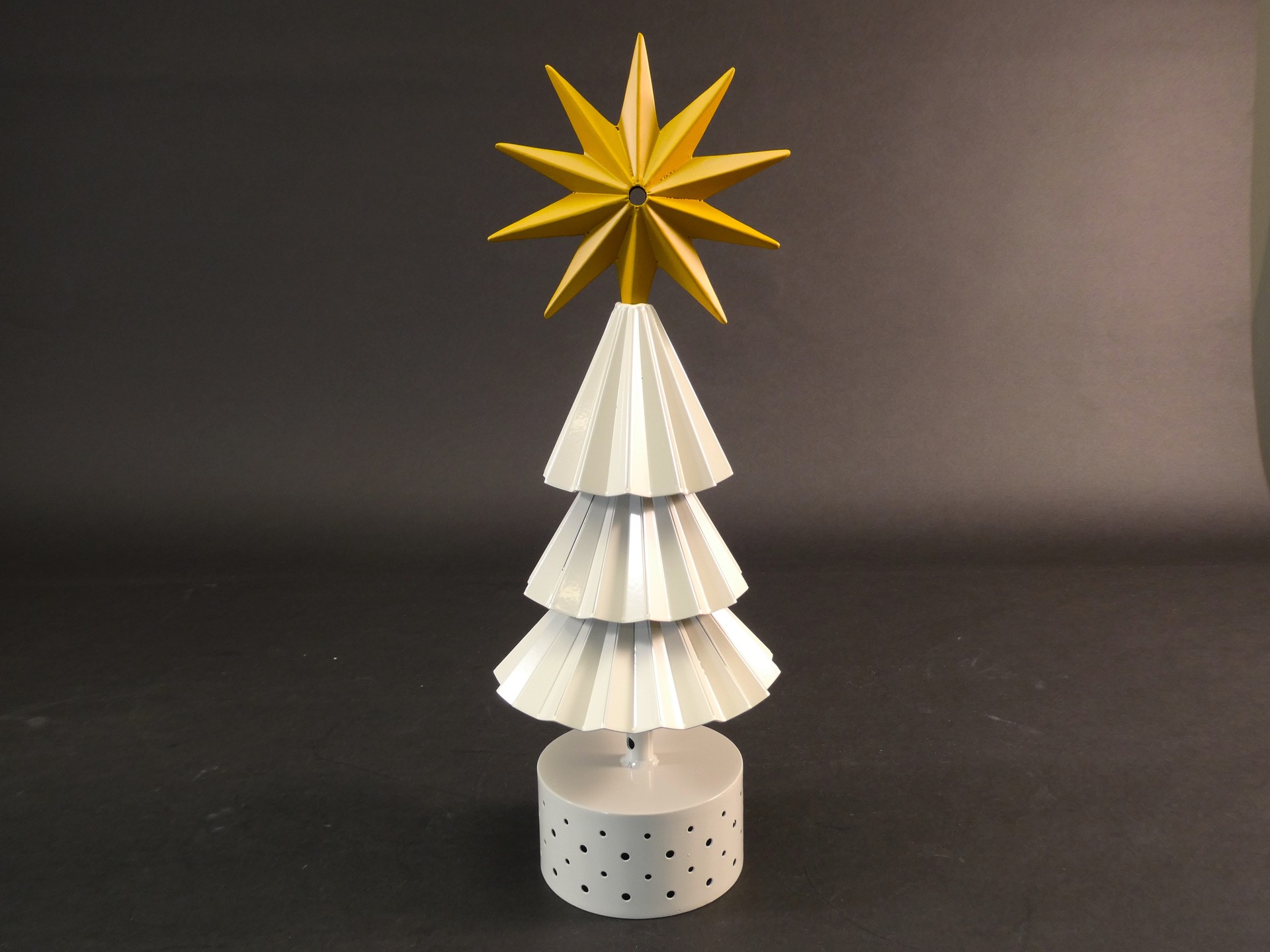 特長として、土台の内部照明と着脱可能な星を設け、複数のパーツを溶接で丁寧につなぎ合わせ、仕上げを施しました。