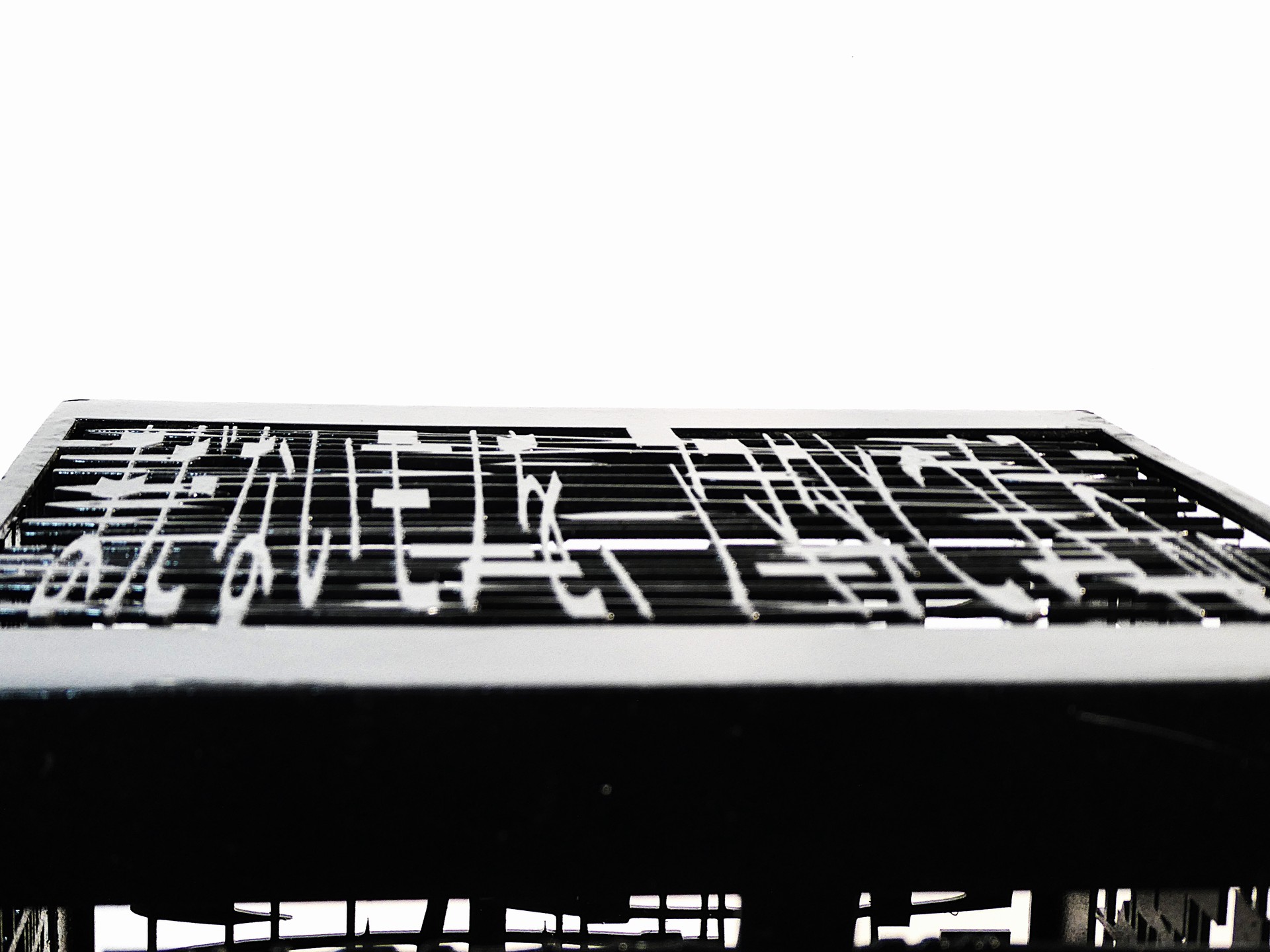 斜めから見ると文字が浮き出てくる不思議なキューブです。