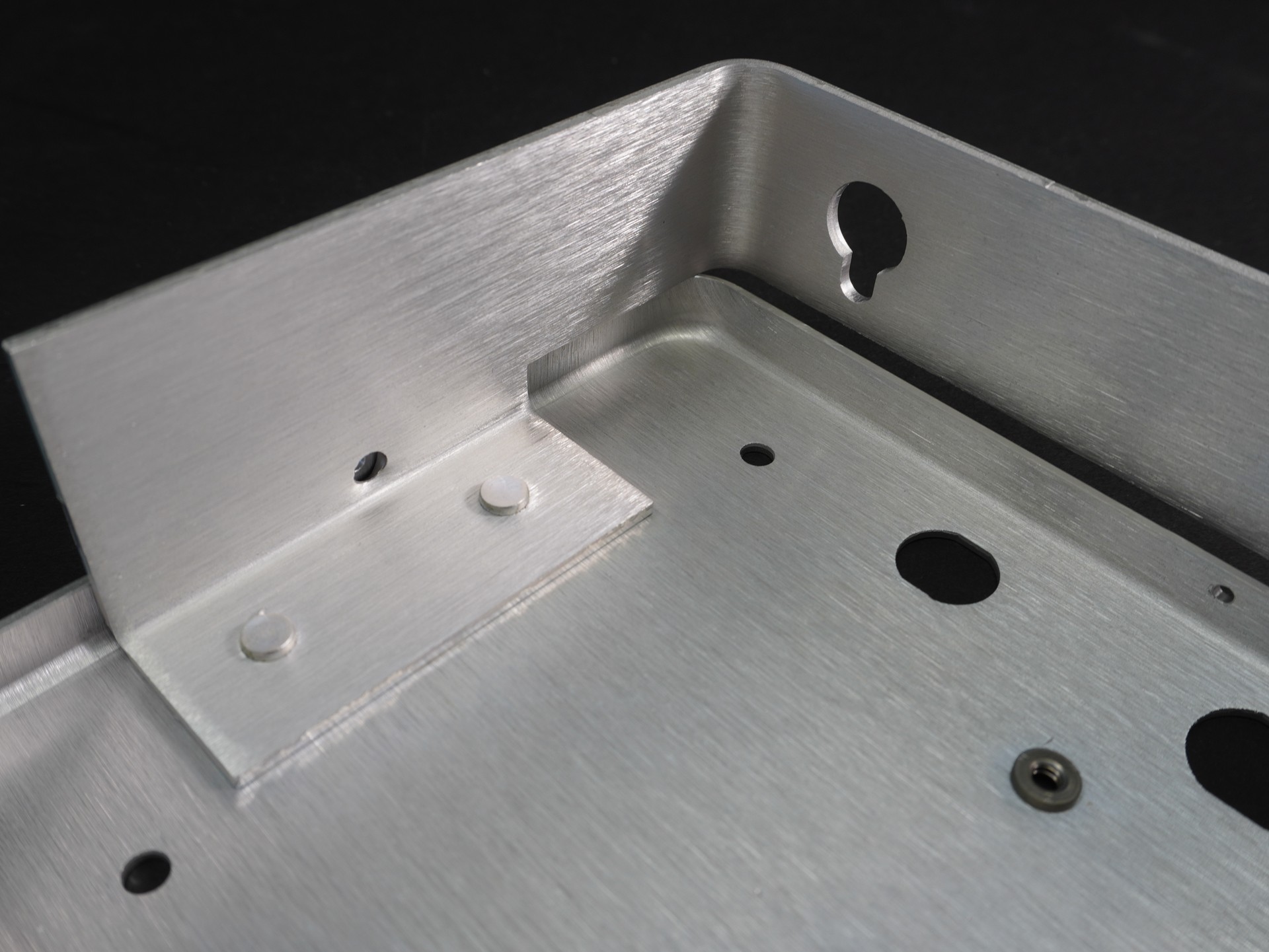Custom made forming die made in house. Custom riviet tool that was made for press brake to allow multiple rivets per hit. There is no welding on this part at all.
