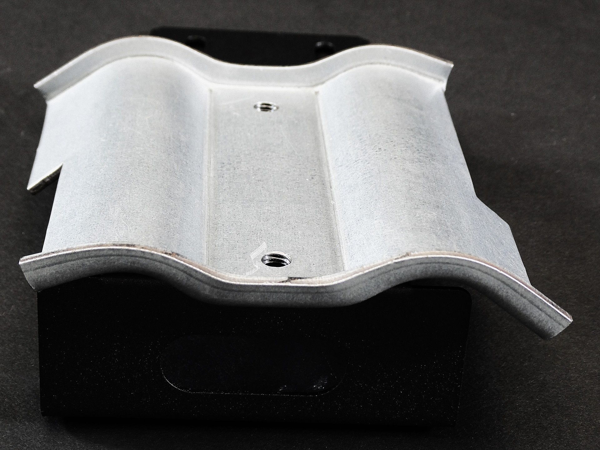こだわった部分はR部分の曲げで、リブがあるためプレスの様にきれいなRが出来ず悩みましたが、30Φのパンチで少しずつずらしながら押し込むことで、きれいなRを再現しました。