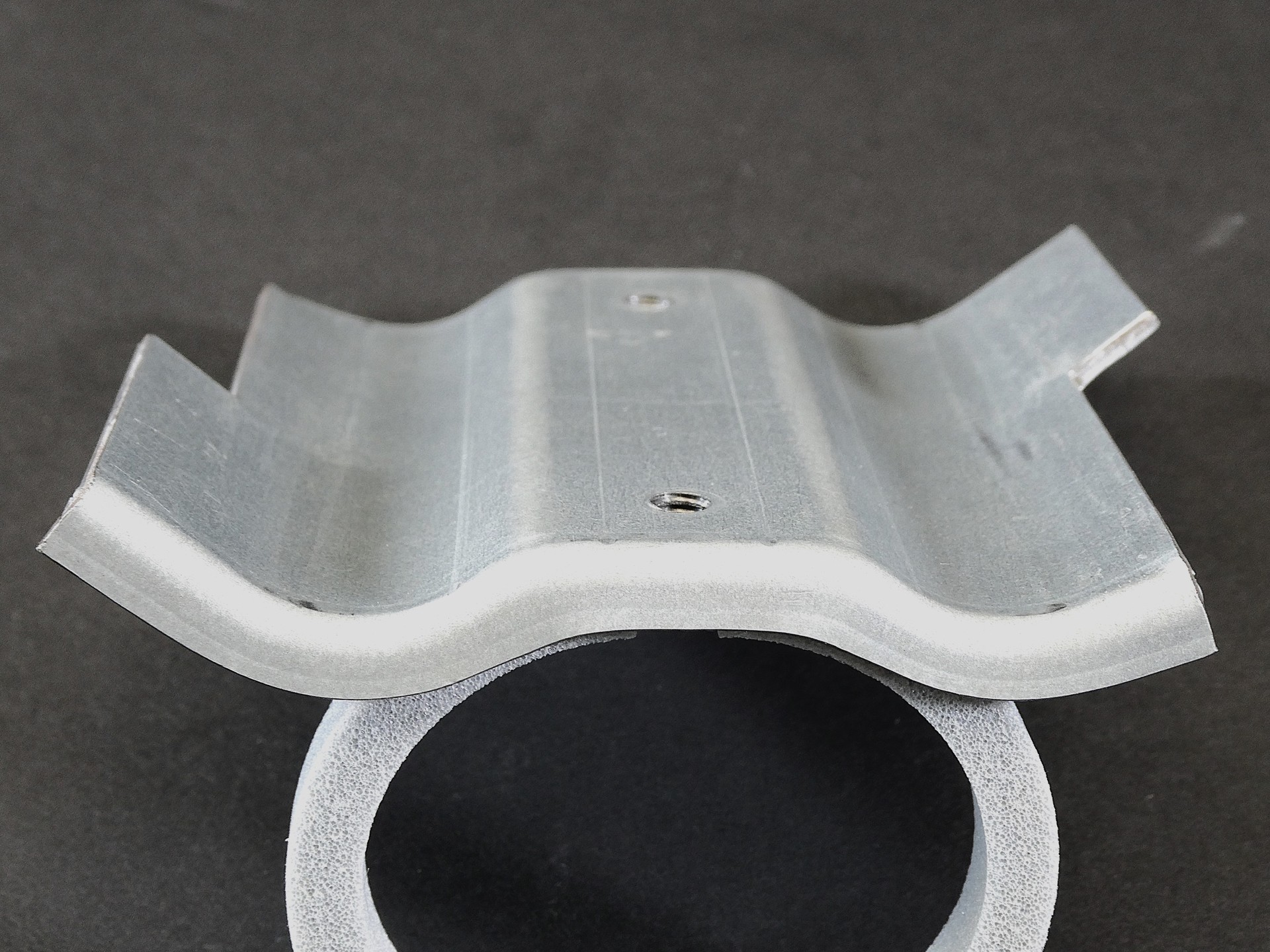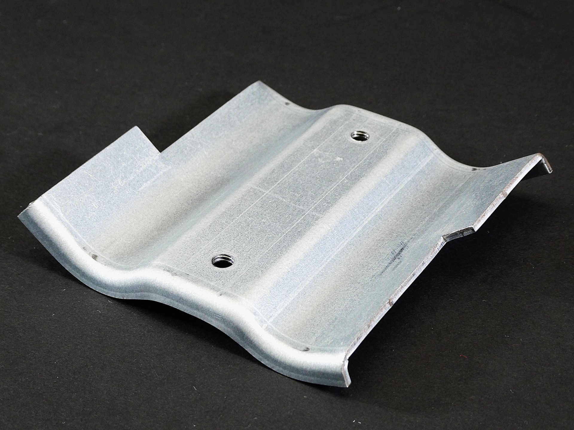 プレス金型が破損する恐れがあり、ベンダーで曲げられないか?と試行錯誤の上で曲げた製品です。