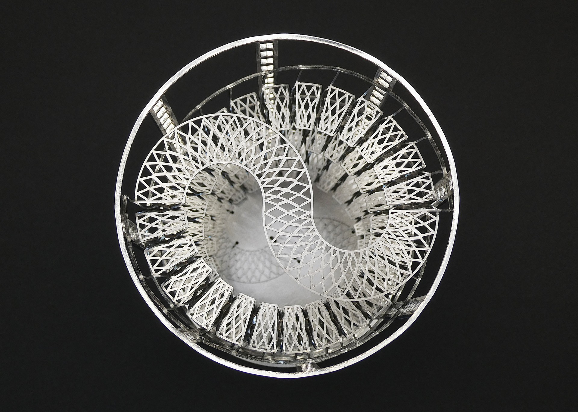 本作品はSUS304の一枚板を手曲げによって螺旋階段として成形することに挑戦した作品です。