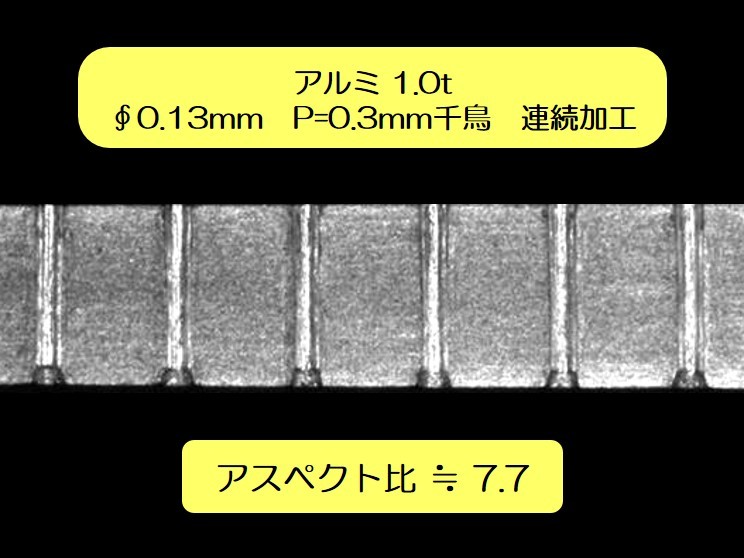 微細穴加工において、φ0.13mmの高アスペクト比金属穴あけ加工に挑戦しました。