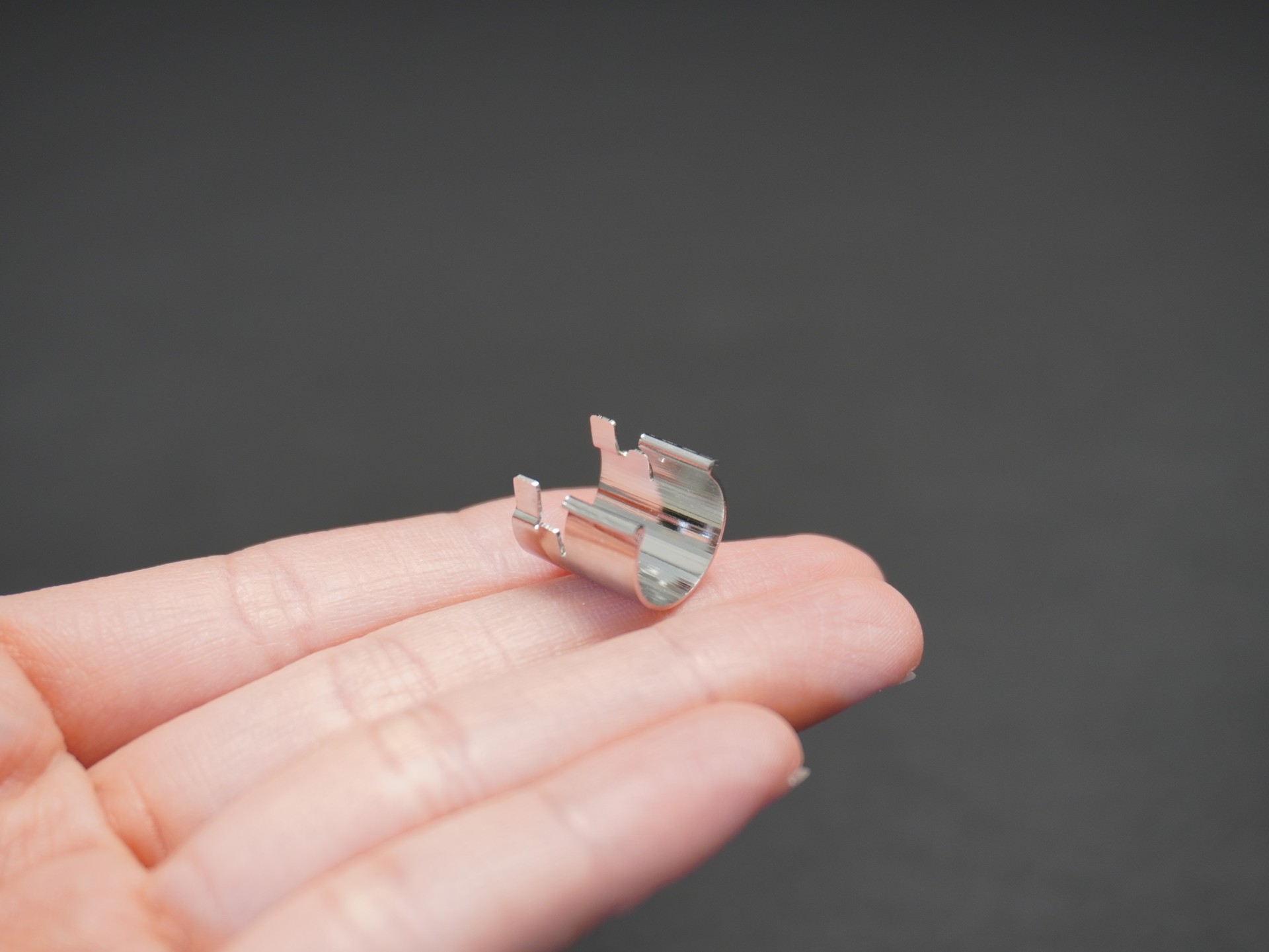 電子製品の部品を固定させる導電性クリップです。 FR曲げで精密に曲げました。 特に両側のフランジの場合、フランジの長さが非常に短いため、加工が難しい製品となります。