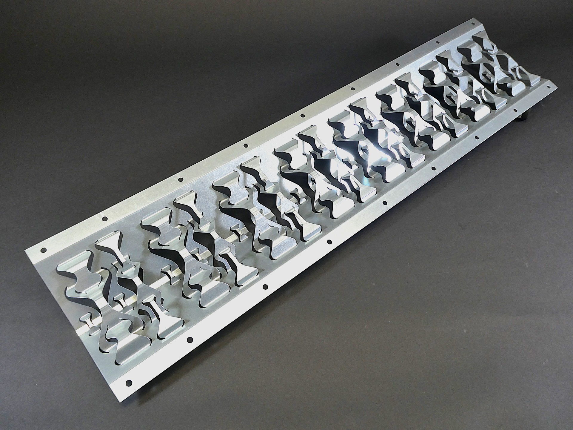 当該製品は130mm~2080mmの長さで130mm刻みの16種類が存在しており、それらを1つの金型で製作している。