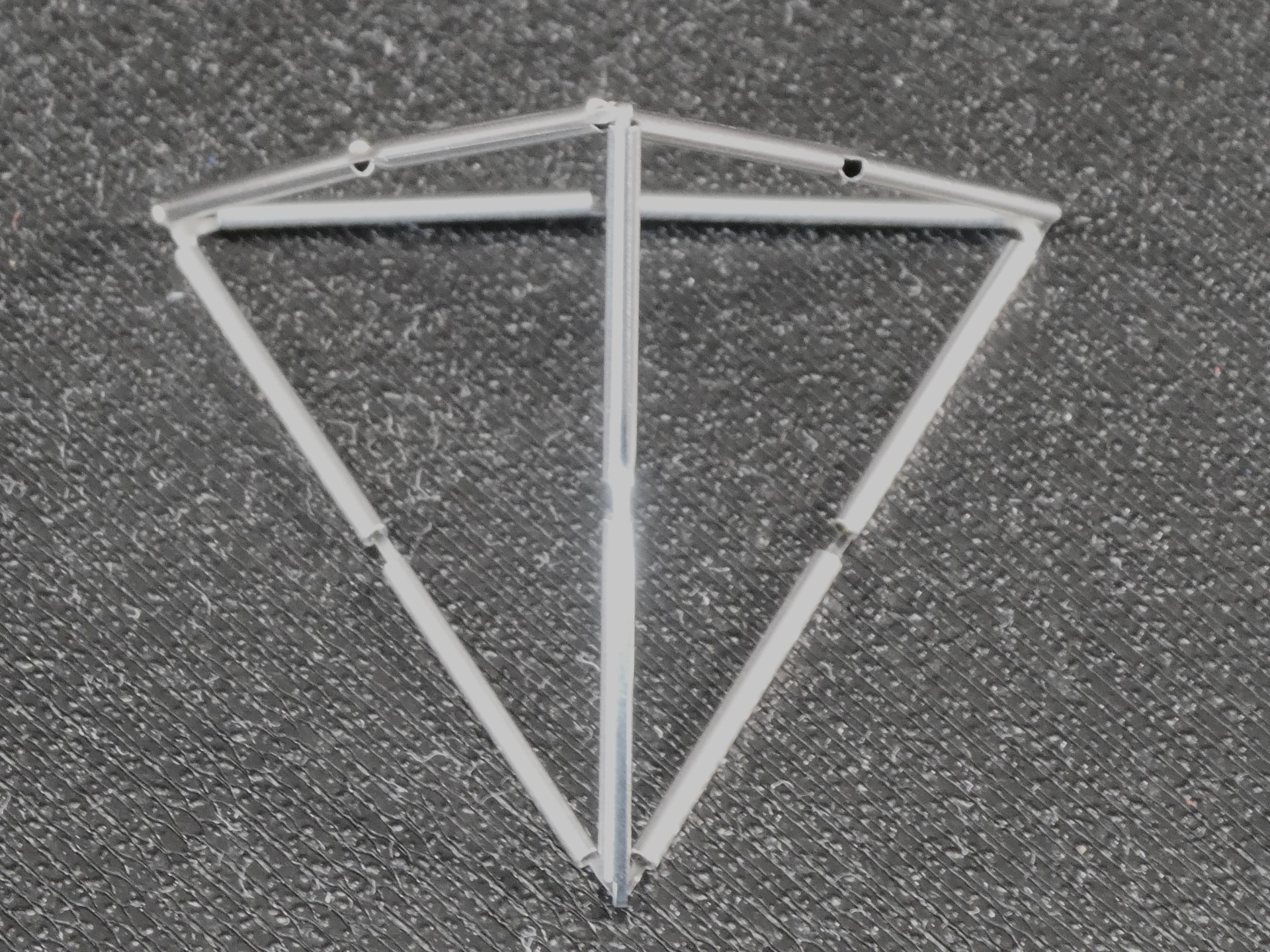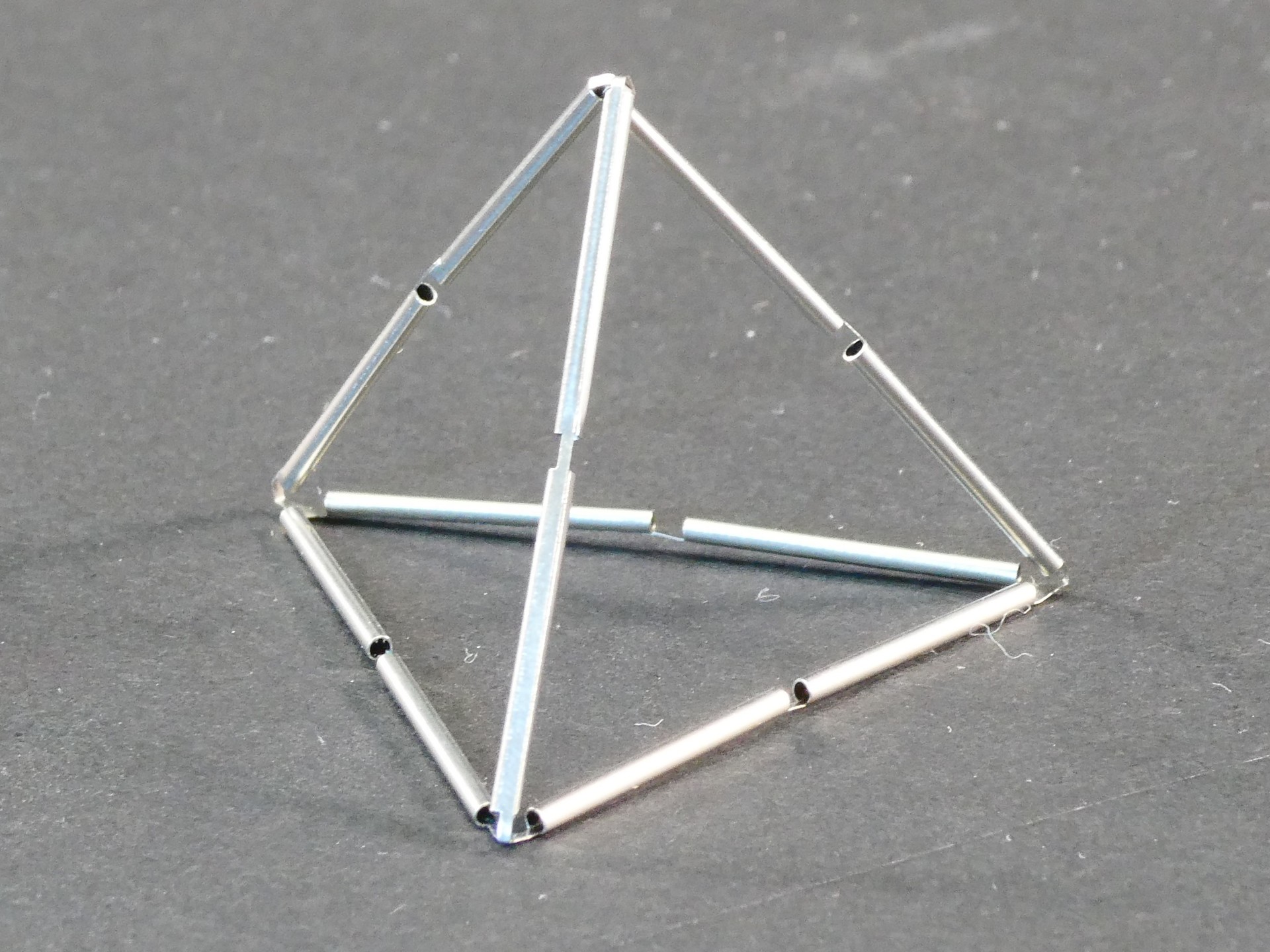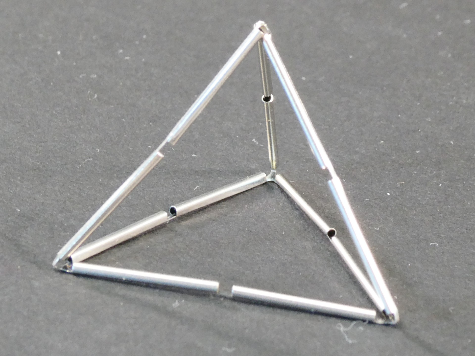 ・パイプ形状を微細ジョイントで連結する事で、フレキシブルな形状への展開が可能で、今回は正4面体構造を具現化した。