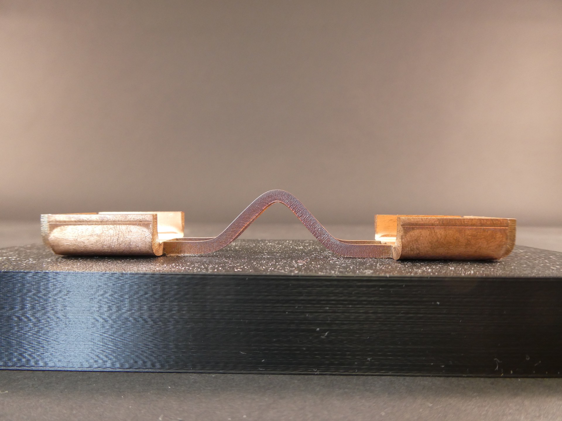 ・板厚より幅が小さいフランジ曲げは、通常の曲げでは変形や倒れ、歪みが出たりと非常に不安定で、ファイバーレーザの特性と曲げの独自ノウハウにより歪みを最小限に抑えつつ形状を実現。