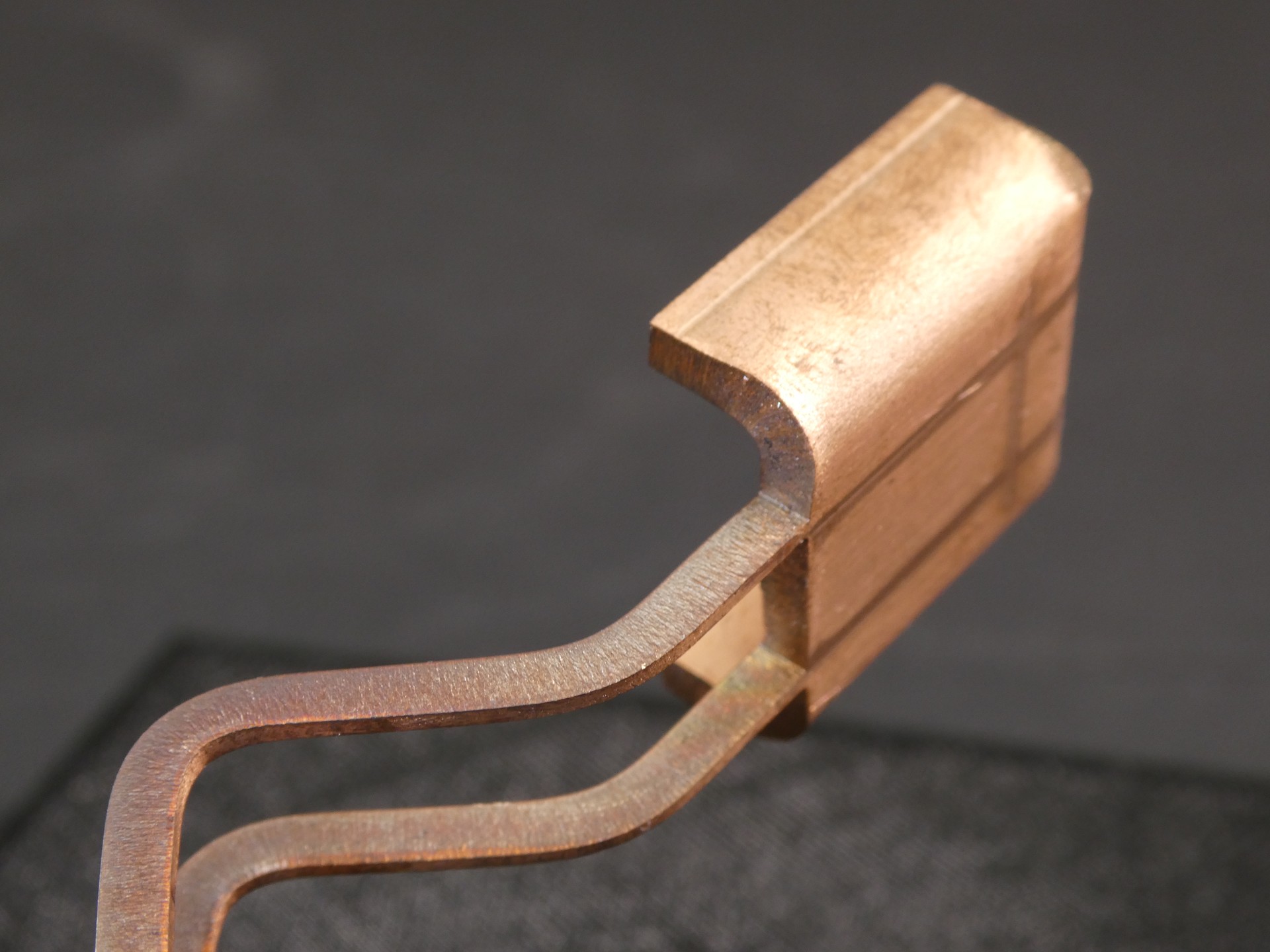 ・通常では切削加工やワイヤー放電加工となる製品を板金加工品としてとらえ、V曲げエアベンドに転換。