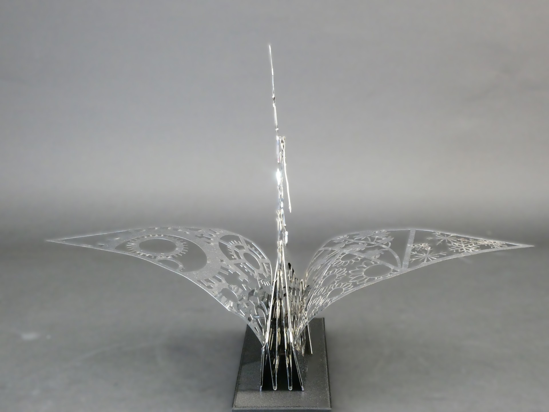 使用材料を決めた理由: SUS430は強度と光沢に優れ、長く形を保てるため選びました。また、レーザー加工で細部まで美しく表現できるからです。