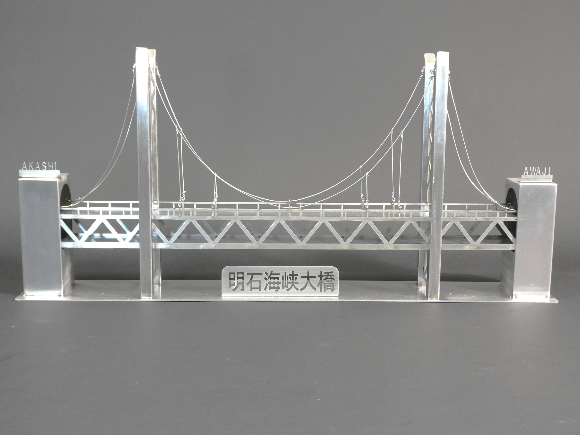 作品テーマを選んだ理由: 2025年8月に初めて明石海峡大橋を渡り、そのスケールの大きさに驚き、これを溶接・板金で表現できないかと思い、製作にチャレンジしました。