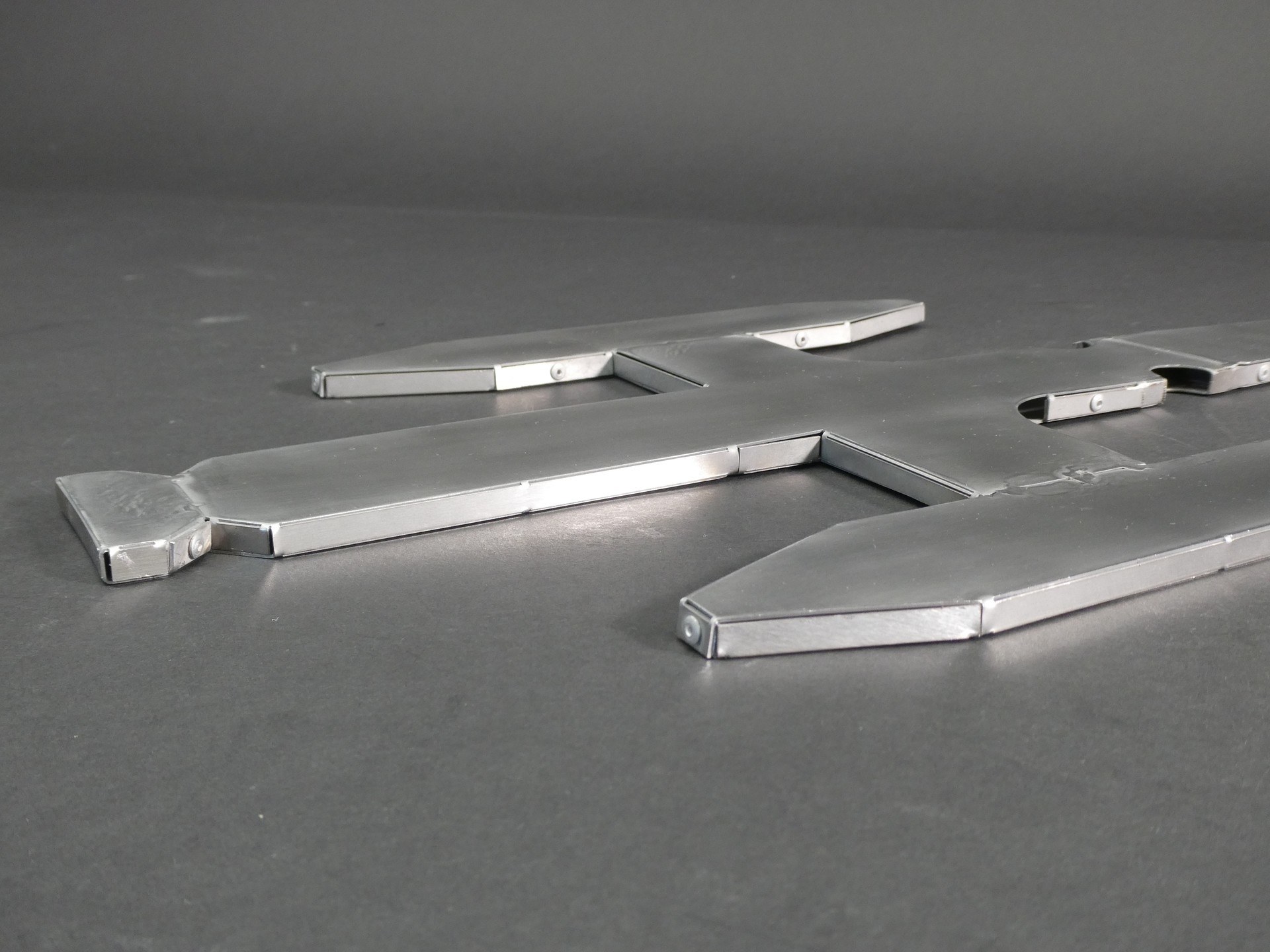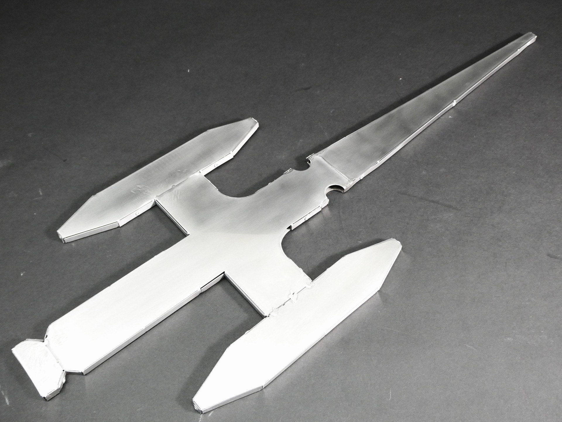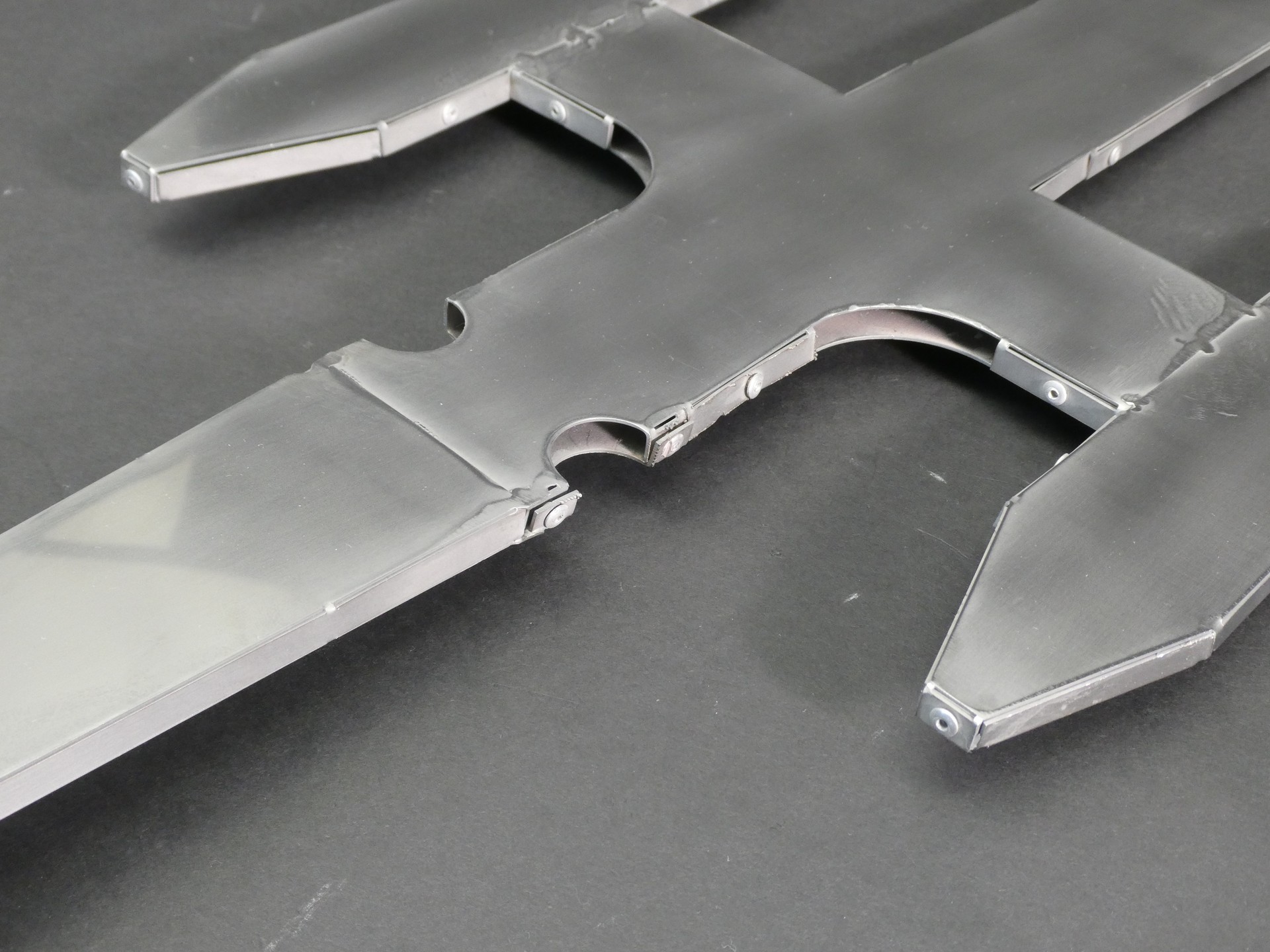 当初は1つのパーツから作り上げることにチャレンジしましたが、設計・組立が難しく、3つのパーツをリベットとTIG溶接で繋ぎ合わせて作ることにしました。