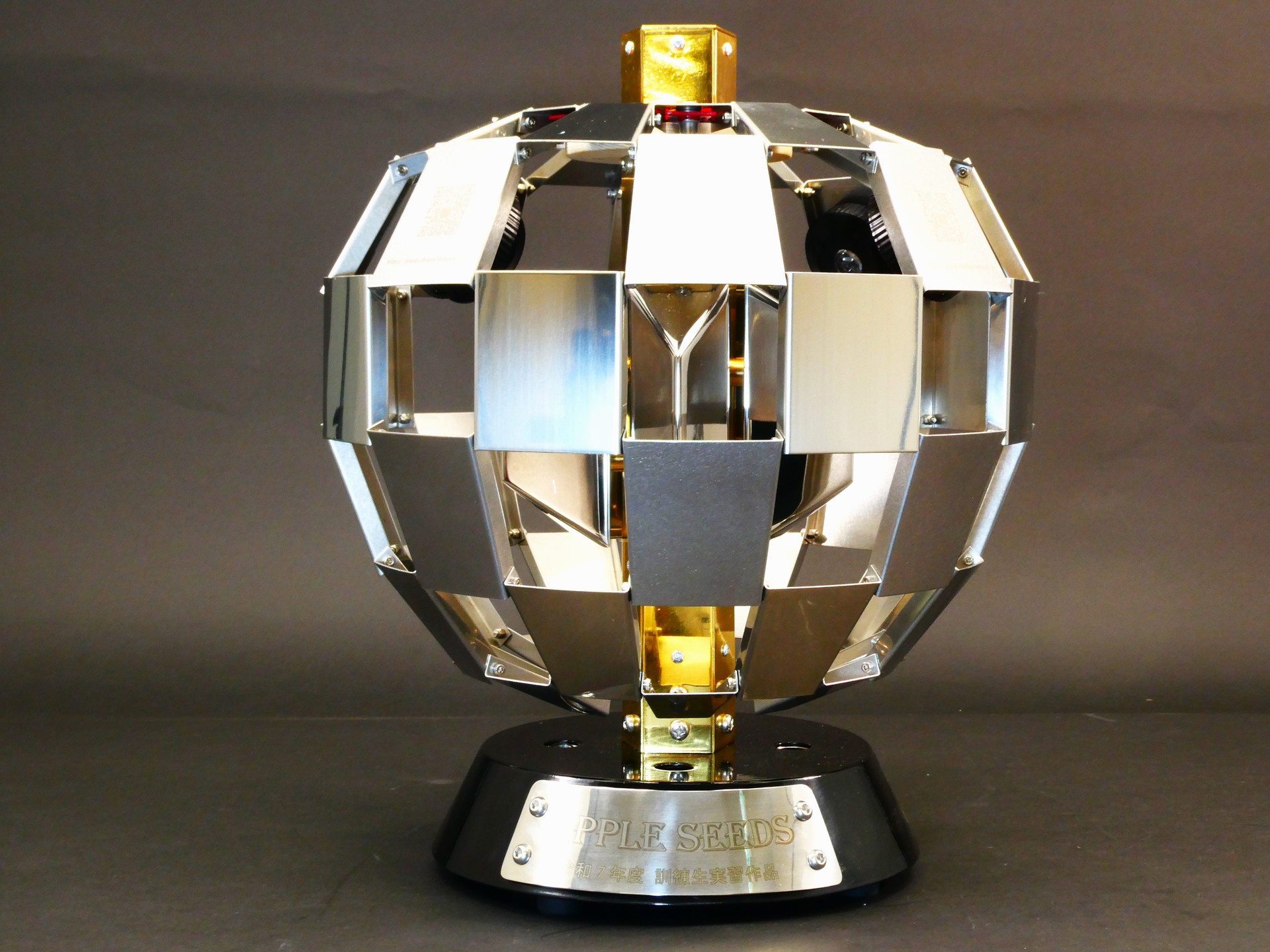 作品テーマを選んだ理由: リンゴをモデルに外殻の曲線美をメッシュ構造で表現、成長の象徴である種部に視線が集まるよう設計しました。訓練要素を盛り込み、グループワークとしての作業性や訓練生の技能レベル等を考慮し課題を選定しました。