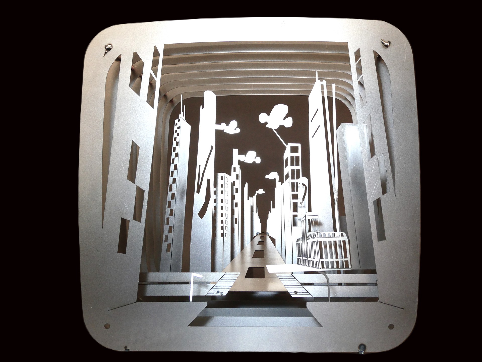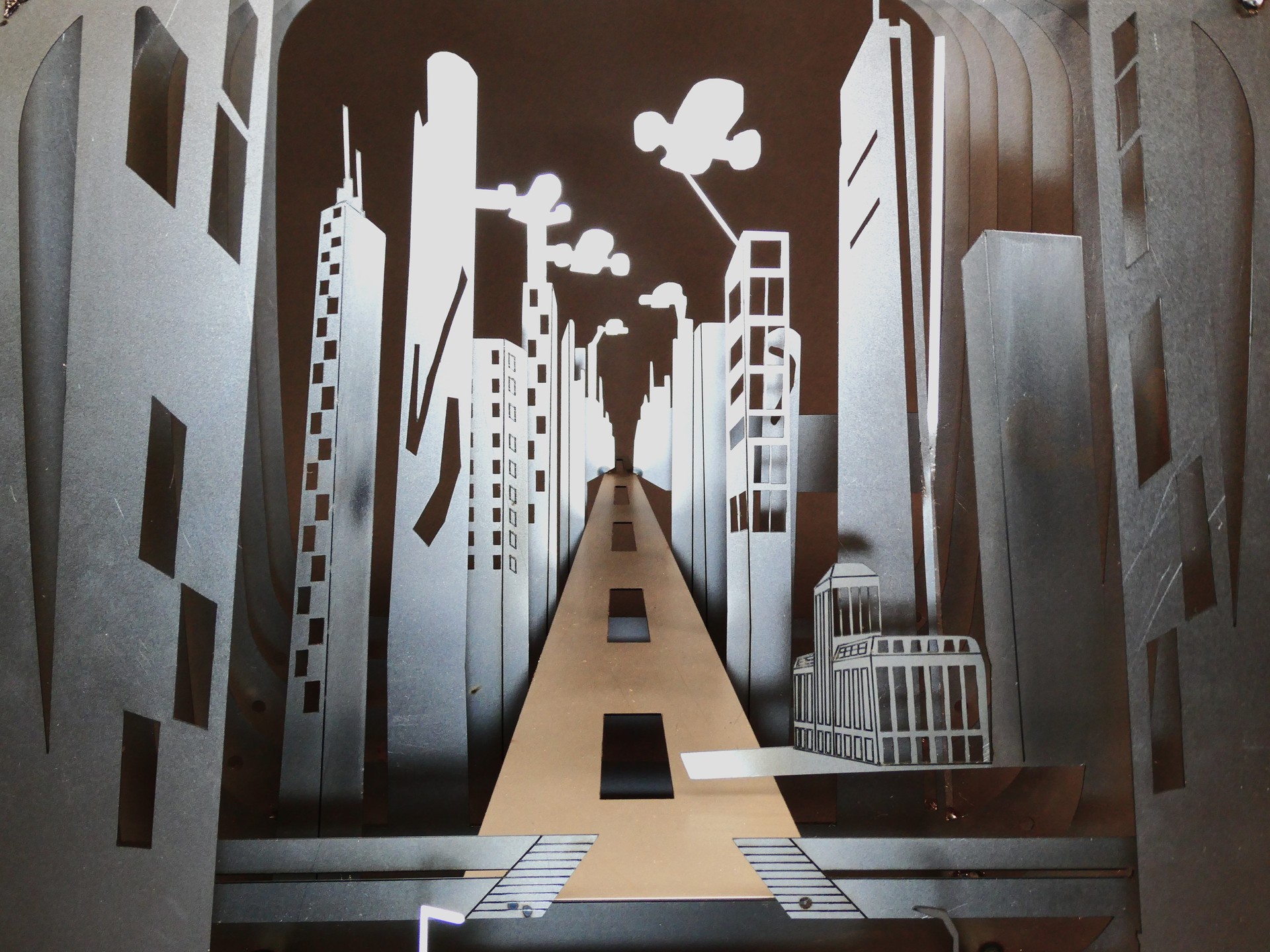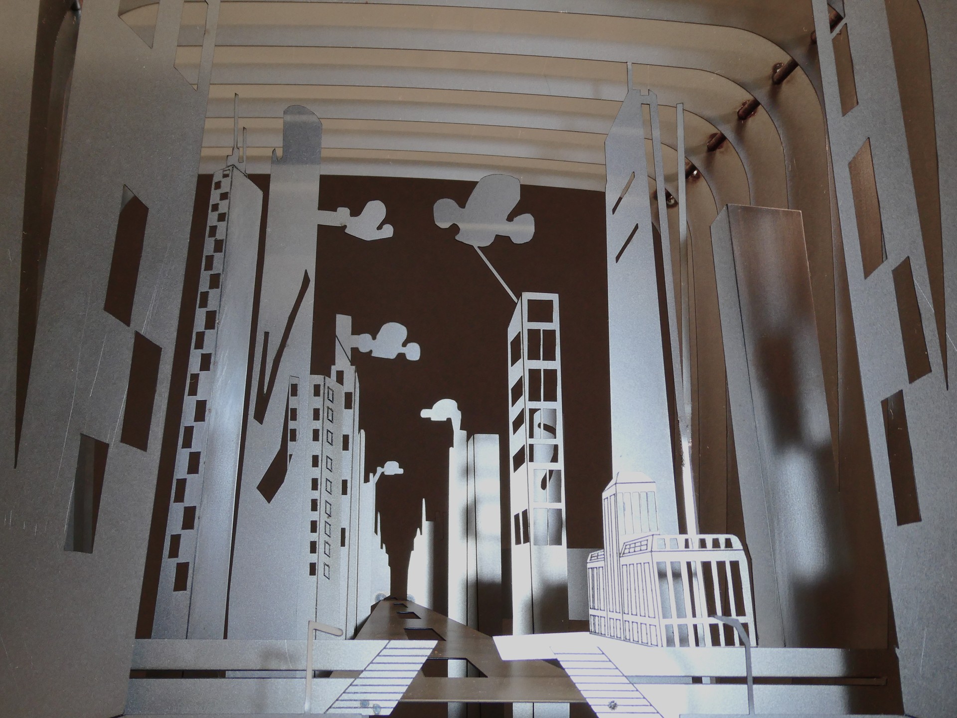 「CRITICAL ERROR」と表示され、加工は不可能になりました。当初はレーザーでパーツを切り抜き、溶接で仕上げる予定が、思いがけないトラブルで計画は大きく変わりました。しかし、その“想定外”が今年の自分たちの作品テーマである「驚き」を経験しました。技術への信頼が崩れる瞬間、創作の中に潜む不確実さや偶然の力を実感しながら、「未来の町」の景色を表現しています。