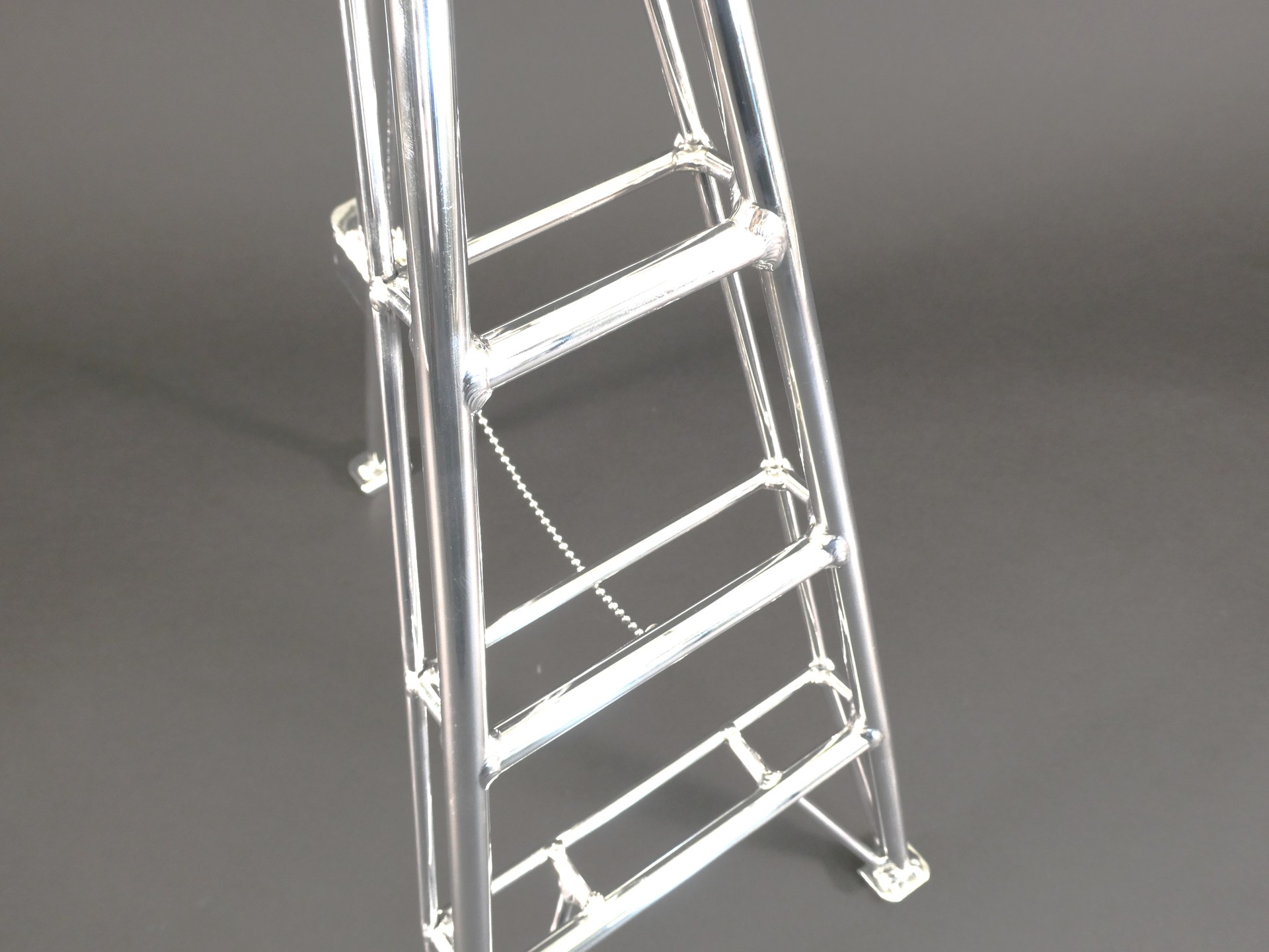 また、ハシゴの縦骨部分は、ストレートではなく意図的に湾曲した形状を採用することで、上りやすさと強度を向上させています。
