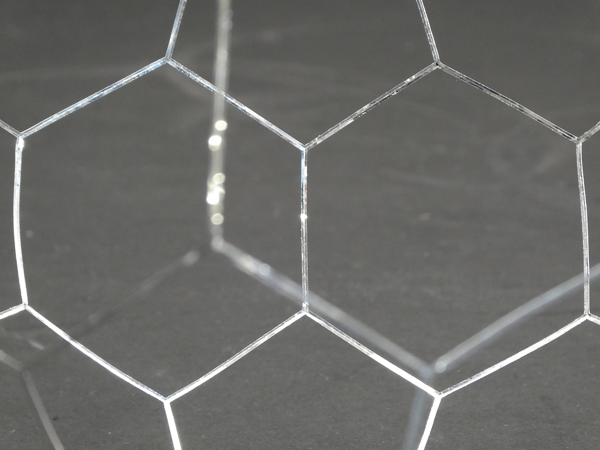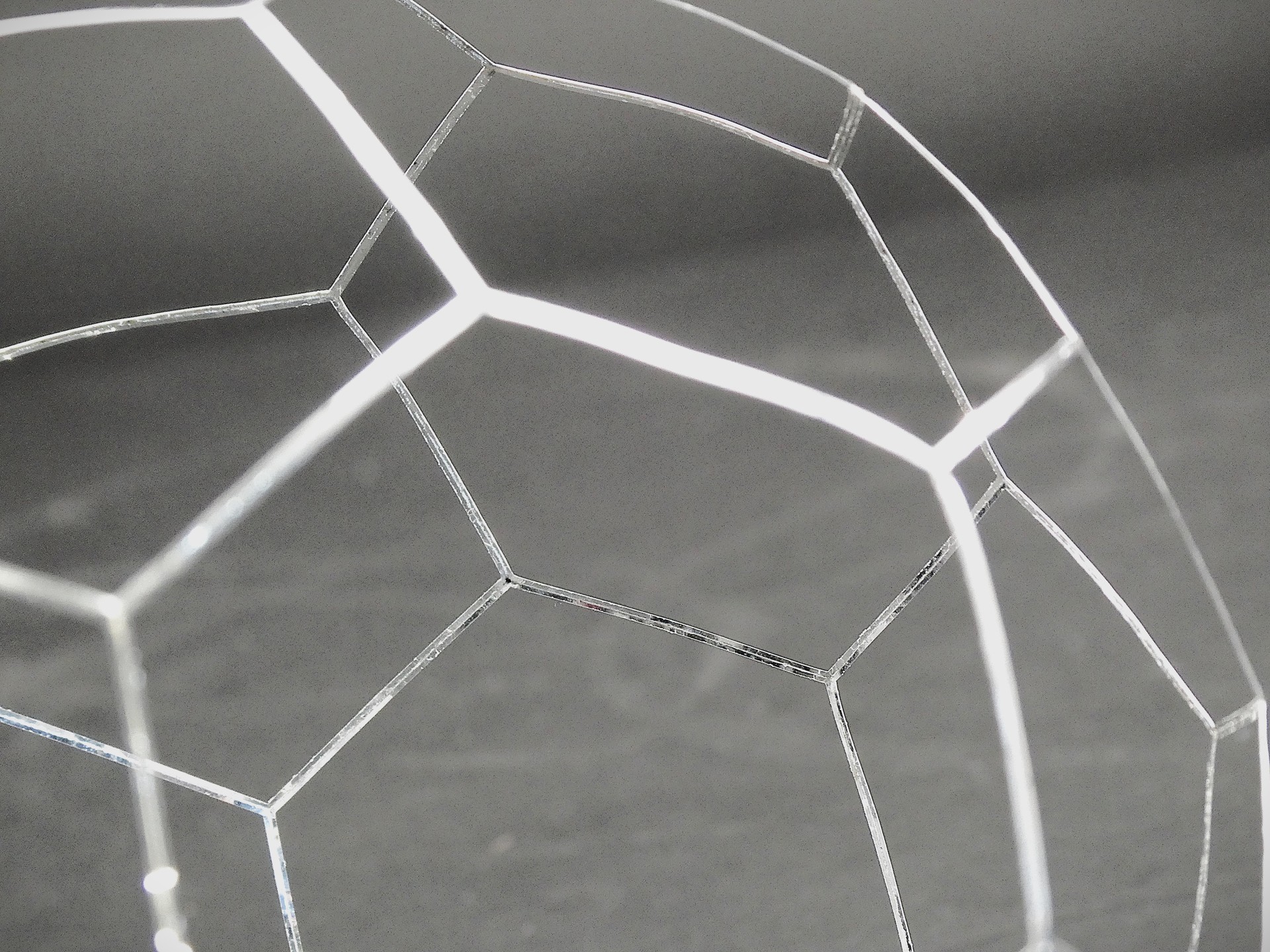 面ではなくフレーム形状で合わせが難しく、溶接時に熱だまりや欠落が起こりやすい構造です。極力入熱を抑えつつ幅0.5mmを突き合わせ共付け溶接することでフレーム幅1mmを実現しました。