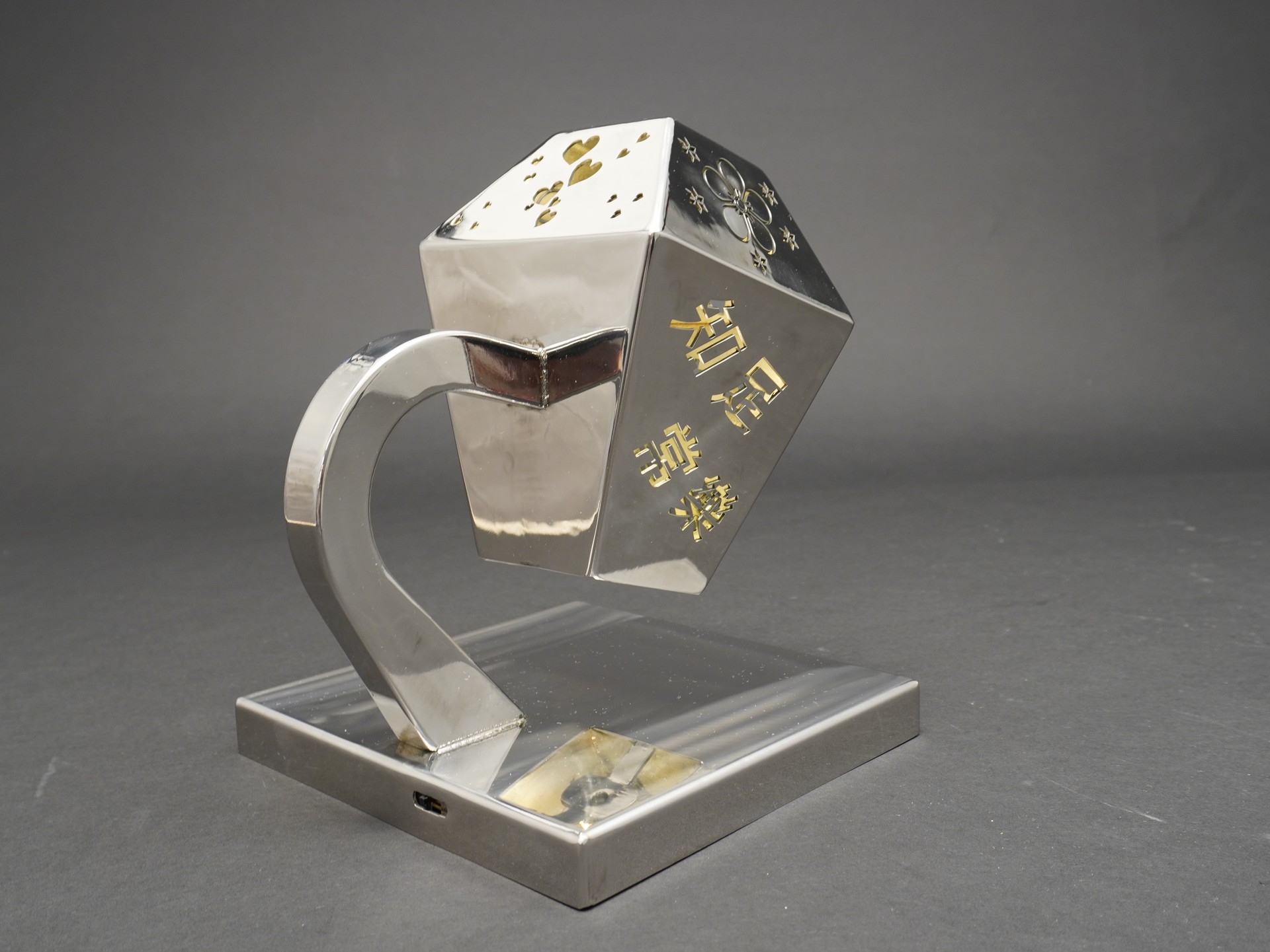 Main techniques include laser cutting, bending, sub-welding, and post-welding hand polishing. The piece comprises three main parts — the lantern cover, main body, and base. Sixteen welds on the cover and body were carefully polished to minimize visible marks. Both the lantern and base underwent mirror polishing, requiring exceptional precision and effort. Internal lighting was installed inside the hollow support frame to simulate the glowing effect.