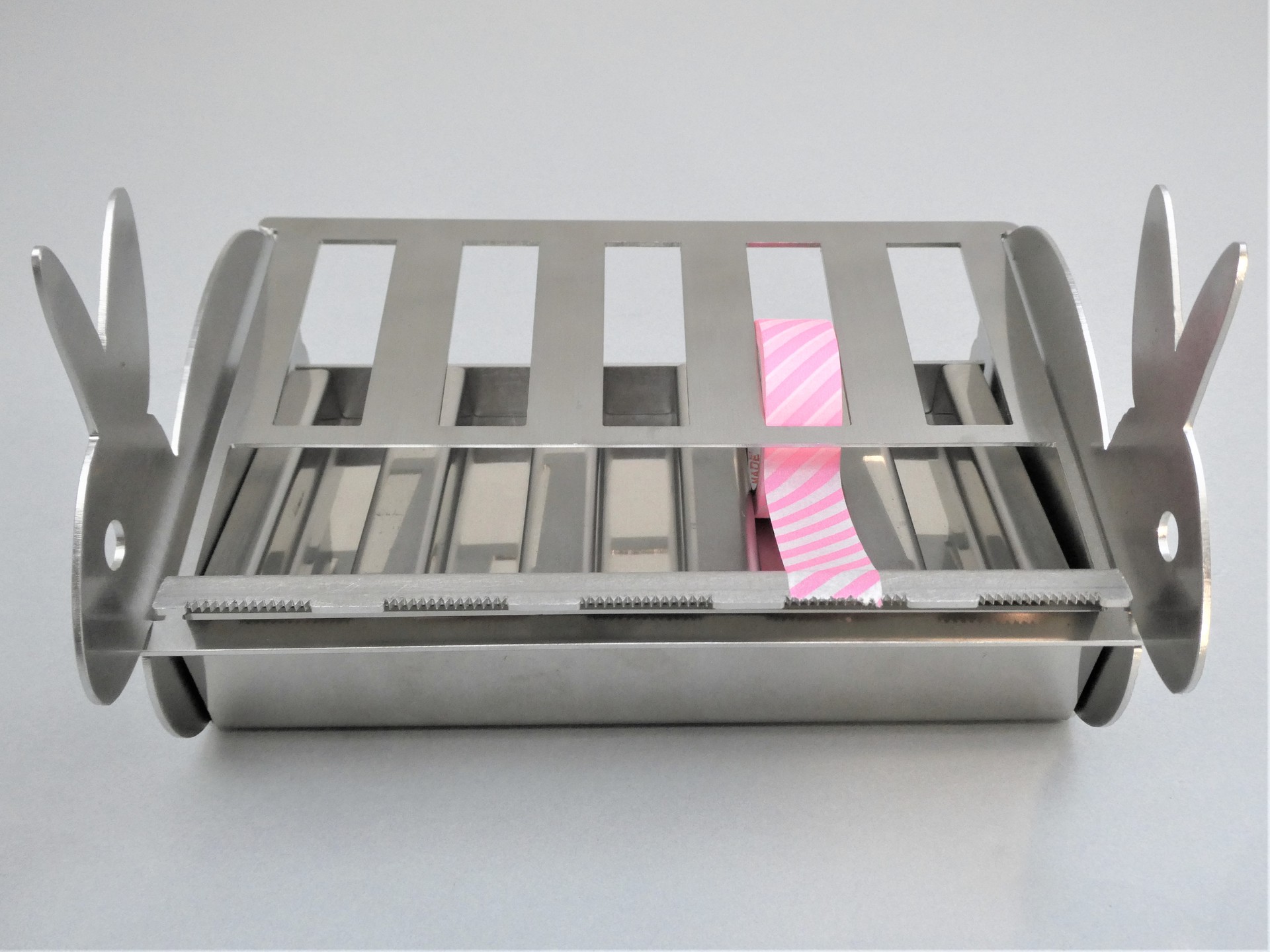 ③、テープカット部(ウサギの歯)を鋭角のギザギザにレーザーかlとして容易に切れるように工夫した。