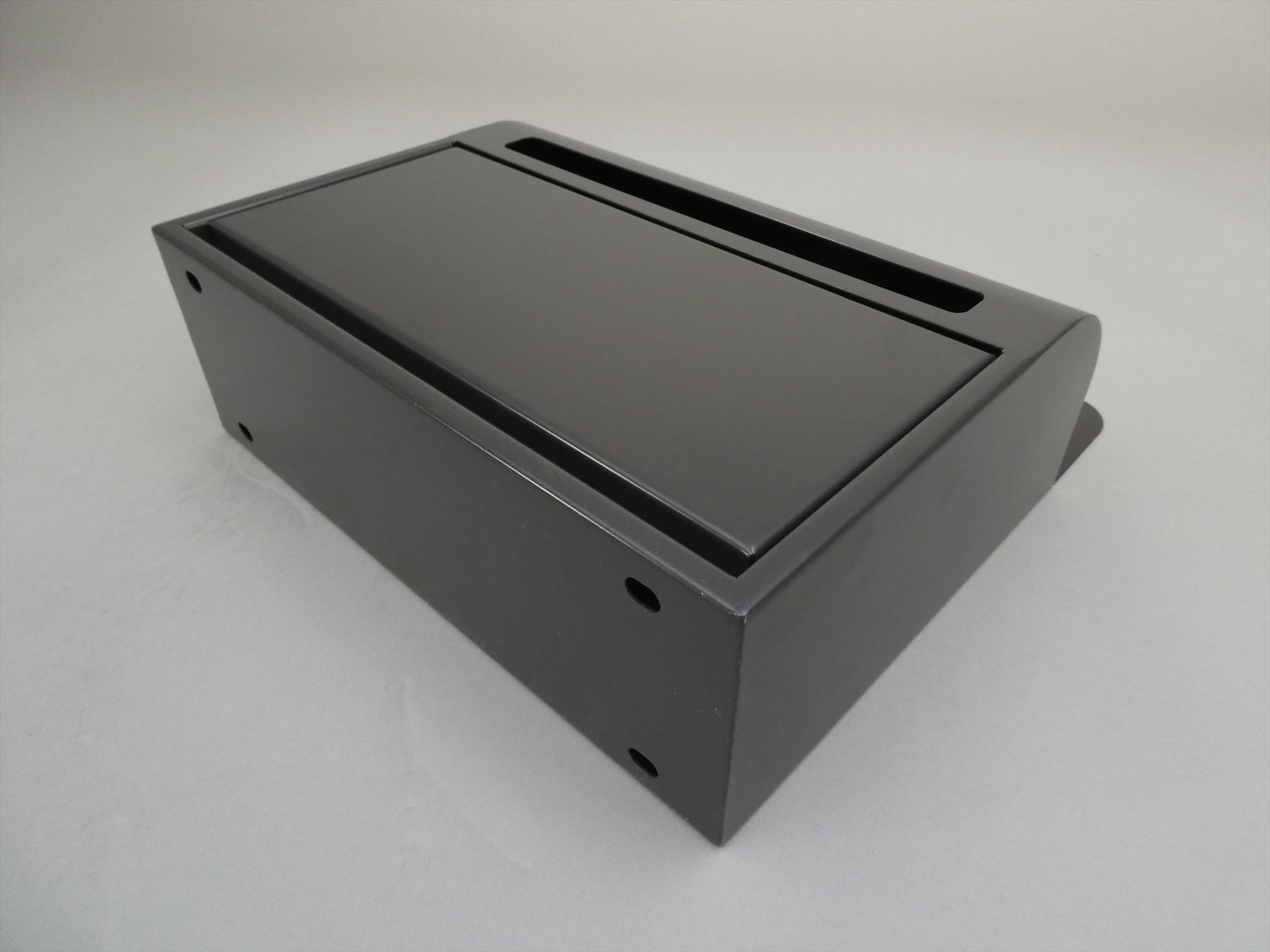 屋外に設置される郵便箱なので、雨水のサビ防止のためSUS304素材を使用、粉体塗装をしたものである。