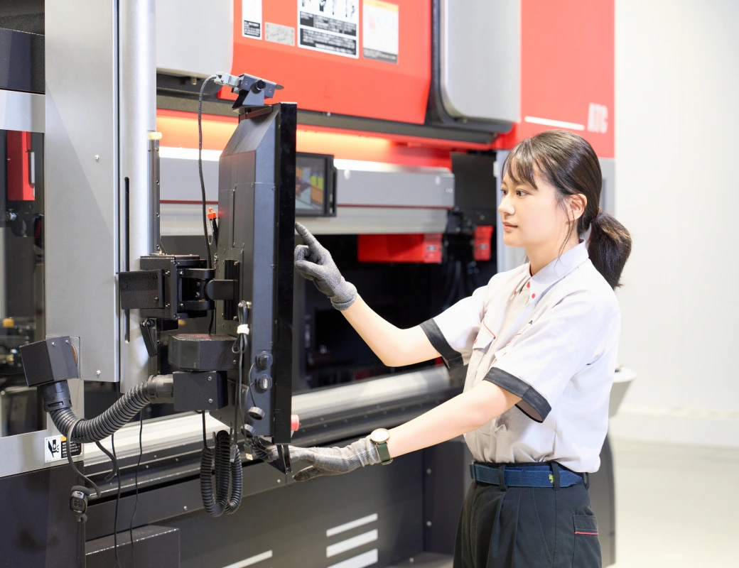 またそこで、小さく物腰柔らかな女性社員が、大きく堅牢な金属加工機械を前に活躍している姿を見て、アマダで働くことを決意しました。